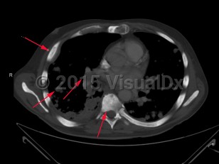 In patients with bone metastasis, the axial skeleton is often involved. Common findings include bone pain, pathologic fracture, and spinal cord compression may be observed. Patients with lymph node involvement will present with regional or cervical lymphadenopathy. Masses may also be observed, especially in the neck. The skin, liver, and penis are also reported areas of involvement.