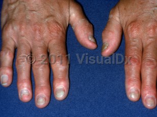Clinical image of Thyroid acropachy - imageId=1665530. Click to open in gallery.  caption: 'Onycholysis in hyperthyroidism.'