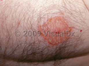 Nipple dermatitis is a localized dermatitis of the areola and/or nipple. It is frequently associated with breastfeeding, friction from jogging, and other contact irritants such as soaps, detergents, or chlorine. It is more common in atopic individuals; in fact, nipple eczema is considered a minor diagnostic criterion for atopic dermatitis. It may also be seen in cases of nummular dermatitis. Because nipple dermatitis may mimic Paget disease, if it does not respond to simple therapy with a mild-to-mid-potency topical steroid, a biopsy should be performed.