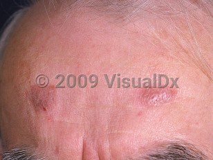 Granuloma faciale (GF) is a rare and idiopathic disorder characterized by the formation of asymptomatic red-brown plaque(s), usually on the face. Extrafacial lesions are present in less than 20% of cases. GF occurs most often in middle-aged white men, but it has been described in both sexes and in multiple ethnicities. In the largest series, the mean age was 53 years (range from 20-89 years). Only a handful of cases of GF have been reported in children.