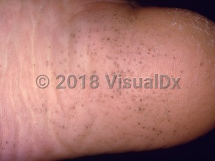 Clinical image of Pitted keratolysis - imageId=230692. Click to open in gallery.  caption: 'Multiple tiny keratin pits on the heel.'