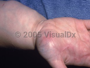Lipoblastoma is a term used to describe encapsulated, soft subcutaneous neoplasms of immature fat, while lipoblastomatosis is a term used to describe unencapsulated and more infiltrating lesions. They are tumors of infancy primarily affecting neonates and infants. Males are affected twice as often as females. The most common locations are the extremities, trunk, and face. Parents usually notice a soft, subcutaneous or deep, mobile, soft tissue mass that can range in size from 1-12 cm on the extremity of a neonate or infant. Lipoblastomas are easily treated by complete excision and rarely recur because they are encapsulated, but lipoblastomatosis has a higher incidence of recurrence given its diffuse nature.