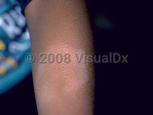 Pityriasis alba is a common condition primarily affecting children, but not exclusively, and especially those with atopic diathesis (eg, asthma, allergic rhinitis and conjunctivitis, atopic dermatitis). Classic pityriasis alba is characterized by ill-defined hypopigmented macules or patches, ranging in size from 0.5-5 cm, occurring on the face or upper body. Lesions may be asymptomatic or mildly pruritic.