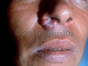 Rhinoscleroma, or Slavic leprosy, is a chronic granulomatous infection of the nasal mucosa, the oropharynx, and upper airways caused by Klebsiella pneumoniae ssp. rhinoscleromatis. There are endemic foci in central Europe, Africa, South America, and Central America. It is typically seen in patients from economically challenged and rural areas.