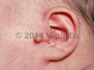 In most cases, there are no associated underlying developmental or syndromic findings; however, cleft lip or cleft palate may occasionally be seen. Syndromic associations include Goldenhar syndrome, Townes-Brocks syndrome, Treacher-Collins syndrome, VACTERL association (vertebral defects, anal atresia, cardiac defects, tracheoesophageal fistula, renal anomalies, and limb abnormalities), Wolf-Hirschhorn syndrome, and Wildervanck syndrome.