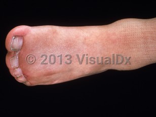 Clinical image of Apert syndrome - imageId=2763659. Click to open in gallery.  caption: 'Marked syndactyly of the toes.'