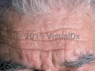 A trichodiscoma is a rare, benign follicular hamartoma that presents as an asymptomatic 2- to 4-mm skin-colored papule on the face, scalp, or upper trunk. The exact incidence of trichodiscoma is unknown, and no sex predilection has been identified. Multiple trichodiscomas may be inherited as part of the autosomal dominant Birt-Hogg-Dubé syndrome (BHD), caused by a mutation in the FCLN gene on chromosome 17. This gene is responsible for encoding a tumor suppressor protein called folliculin.