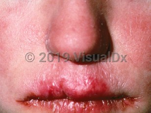 Features of CMC may develop in infancy. Variable involvement of the oral and genital mucosae, nails, and/or skin may be present in any sequence. Generally, infants present with either oral candidiasis (thrush) or diaper dermatitis. This is followed by onychomycosis and the possible later development of chronic disfiguring skin lesions, which appear as hyperkeratotic crusted areas on the face, scalp, and hands.