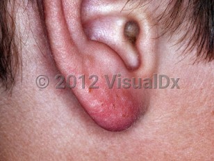 Juvenile spring eruption (JSE), also known as juvenile spring eruption of the ears, is considered to be an unusual, localized variant of polymorphous light eruption (PLE or PMLE) that typically occurs in childhood. JSE occurs most commonly in male children aged 5-12 years but has been reported in young adult males. As opposed to PLE, which typically affects women in their second and third decade, JSE overwhelmingly affects males (97% according to one review). The condition can affect all skin phototypes.