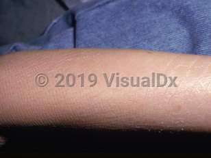 Xerotic, linear, and ichthyotic plaques on the arm.