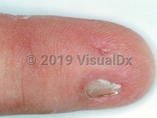 Congenital onychodysplasia of the index finger, also known as Iso-Kikuchi syndrome, is a disorder characterized by a variety of nail deformities of the index fingers and bone abnormalities. Nail abnormalities include micronychia, "rolled" micronychia, polyonychia, hemionychogryphosis, malalignment, anonychia, and onychoheterotopia. The most common bone abnormality is a Y-shaped bifurcation of the distal phalanx, which may occur under both normal and abnormal nails. The defects occur most commonly on the radial side of the index fingers.