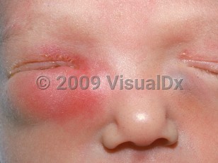 Neonatal dacryocystitis is a special type of dacryocystitis that occurs in less than 1% of all newborns. The onset is usually acute, and the neonate has a swollen mass in the inferior medial canthal area. Often, there is tearing and a mucopurulent discharge. Significant morbidity and even mortality can be associated with this condition. However, the usual course is more indolent with chronic tearing, mattering, failure to thrive, and even amblyopia. Due to anatomic differences, individuals of African descent are less likely to develop the condition. Although incomplete canalization of the nasolacrimal duct is often the basis for this condition, neonatal infection can also be causative.