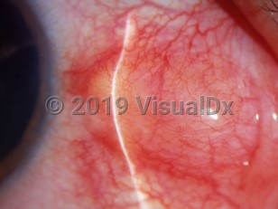 Nodular episcleritis is a frequently recurring inflammatory condition of the episcleral tissue. Onset is usually acute and can be unilateral or bilateral. Nodular episcleritis, as opposed to diffuse episcleritis, implies a discrete area of elevated, inflamed episcleral tissue. Symptoms may be asymptomatic or include irritation, photophobia, tearing, and mild tenderness to palpation.