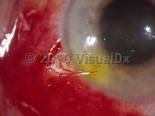 Scleral lacerations are traumatic injuries to the eye and should be considered ophthalmic emergencies as improper treatment can lead to permanent visual loss. On presentation, the patient will have a history of ocular trauma, significant pain, associated photophobia, and blepharospasm. The scleral laceration may cause hemorrhage into the vitreous cavity or extend into the anterior segment causing additional damage such as hyphema or uveal prolapse reducing vision.