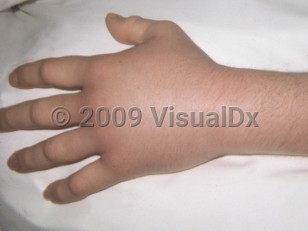 Systemic symptoms include generalized weakness, nausea, vomiting, diaphoresis, tachycardia, hypotension, shortness of breath, lightheadedness, angioedema, lymphangitis, and lymphadenopathy.