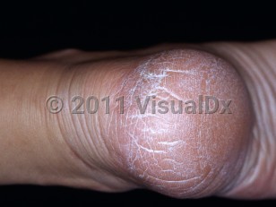Heel fissures (cracked heels) are splits of the epidermis and stratum corneum that occur in many individuals as a consequence of excessive dryness (xerosis) and thickening of the skin. Heel fissures also develop in callused skin. Skin fissures are especially common in winter, when dry cold air is made even drier by indoor heating. The elderly population is at particular risk. In some people, heel fissures occur year round. It should be noted that air conditioning not only cools the air but dries it as well. Because of this, "winter itch" and dryness can even occur in the summer.