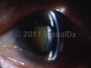 Patients often present with acute onset of extremely painful, decreased vision associated with a red eye and a mid-dilated pupil. Headache, seeing rainbow-colored halos around lights, nausea, and vomiting are also commonly present. There may be a recent history of physiologic (ie, being in a dark room) or pharmacologic pupillary dilation.